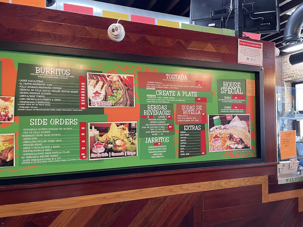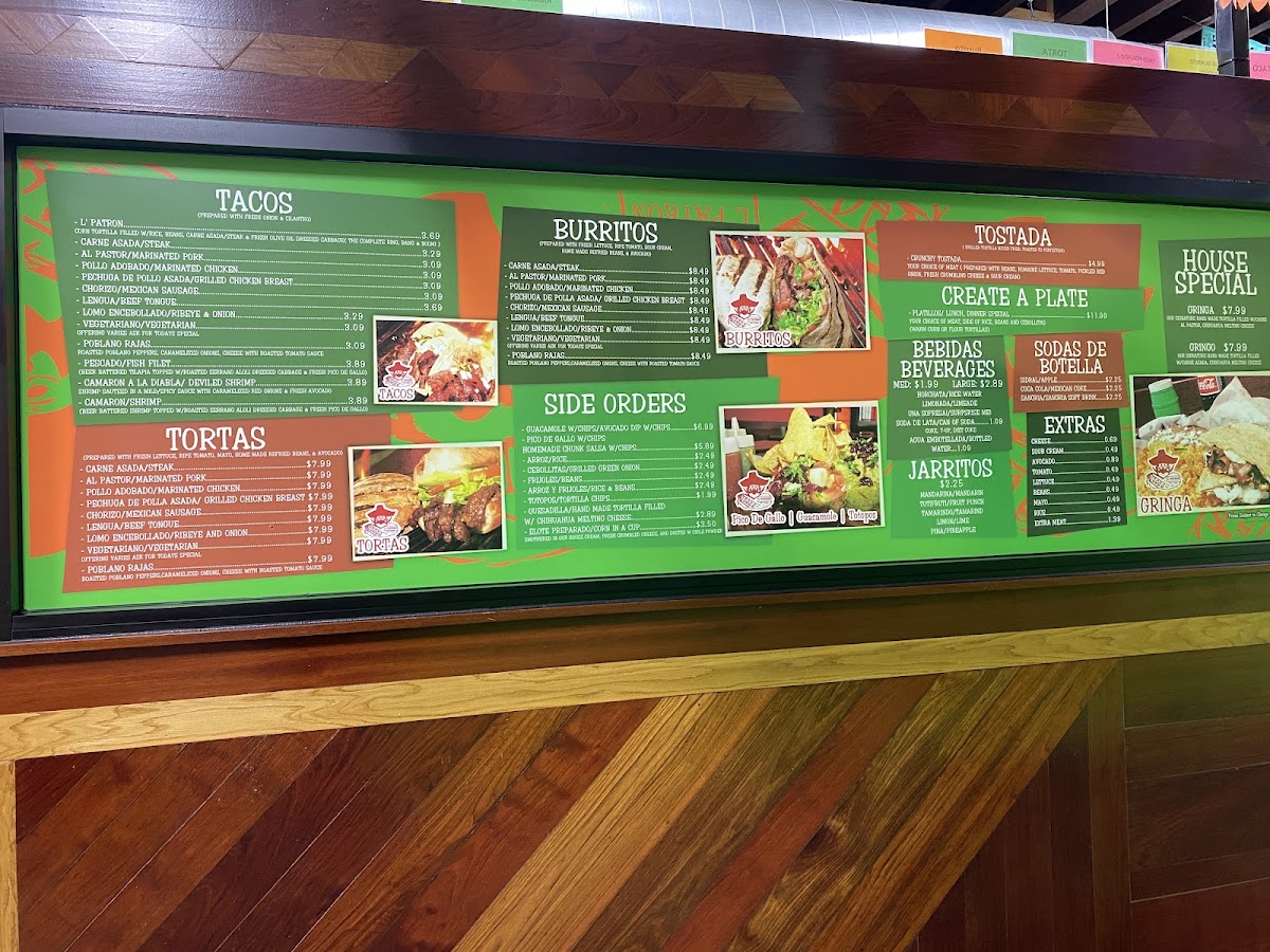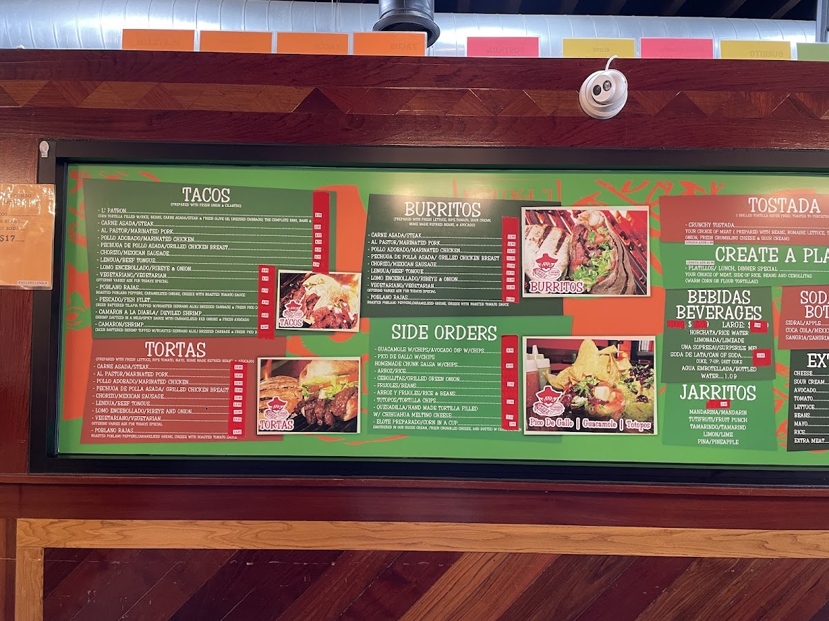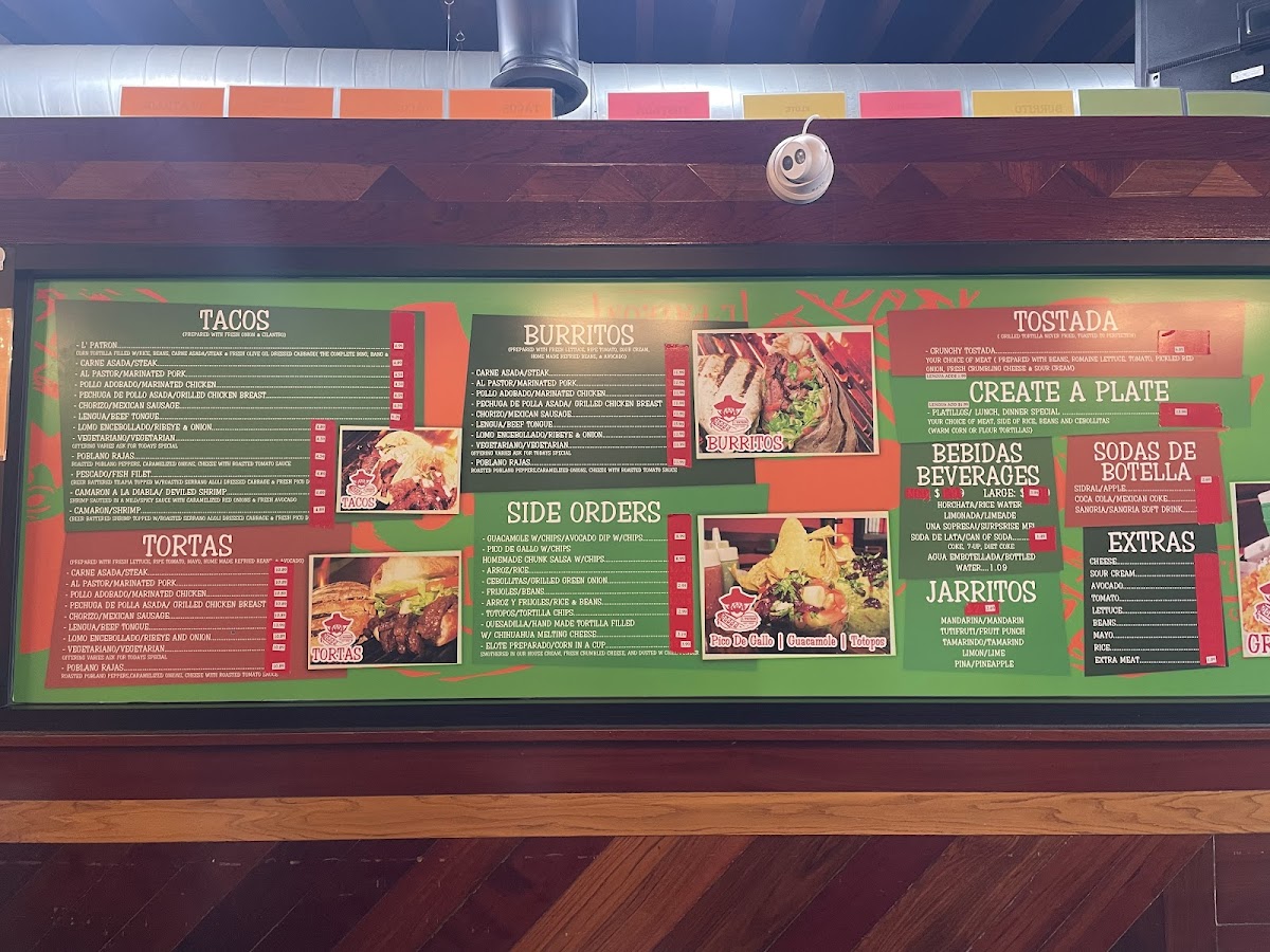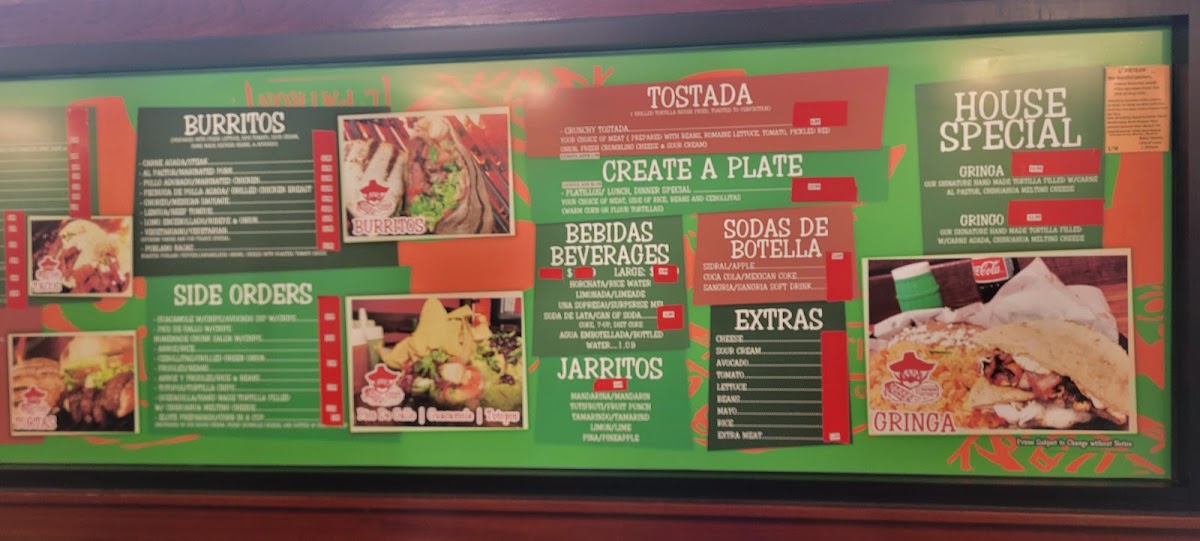 Asada- Refried Beans, Lettuce, Tomatoes, Sour Cream, Avocado.